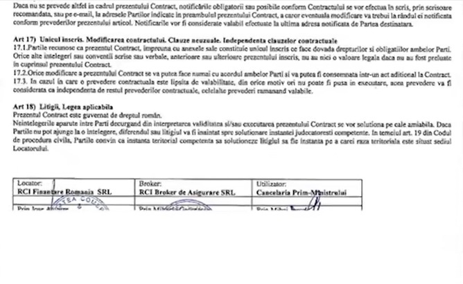 Documentele de achiziție și contractul operațional, intrate în posesia România TV, arată clar legăturile dubioase pe care șeful Cancelariei le are cu Franța. Compania de leasing, RCI FINANTARE ROMANIA – S.R.L are administratori francezi, iar actionar este RCI BANQUE – S.A., persoana juridică franceză, cu sediul social în Paris.