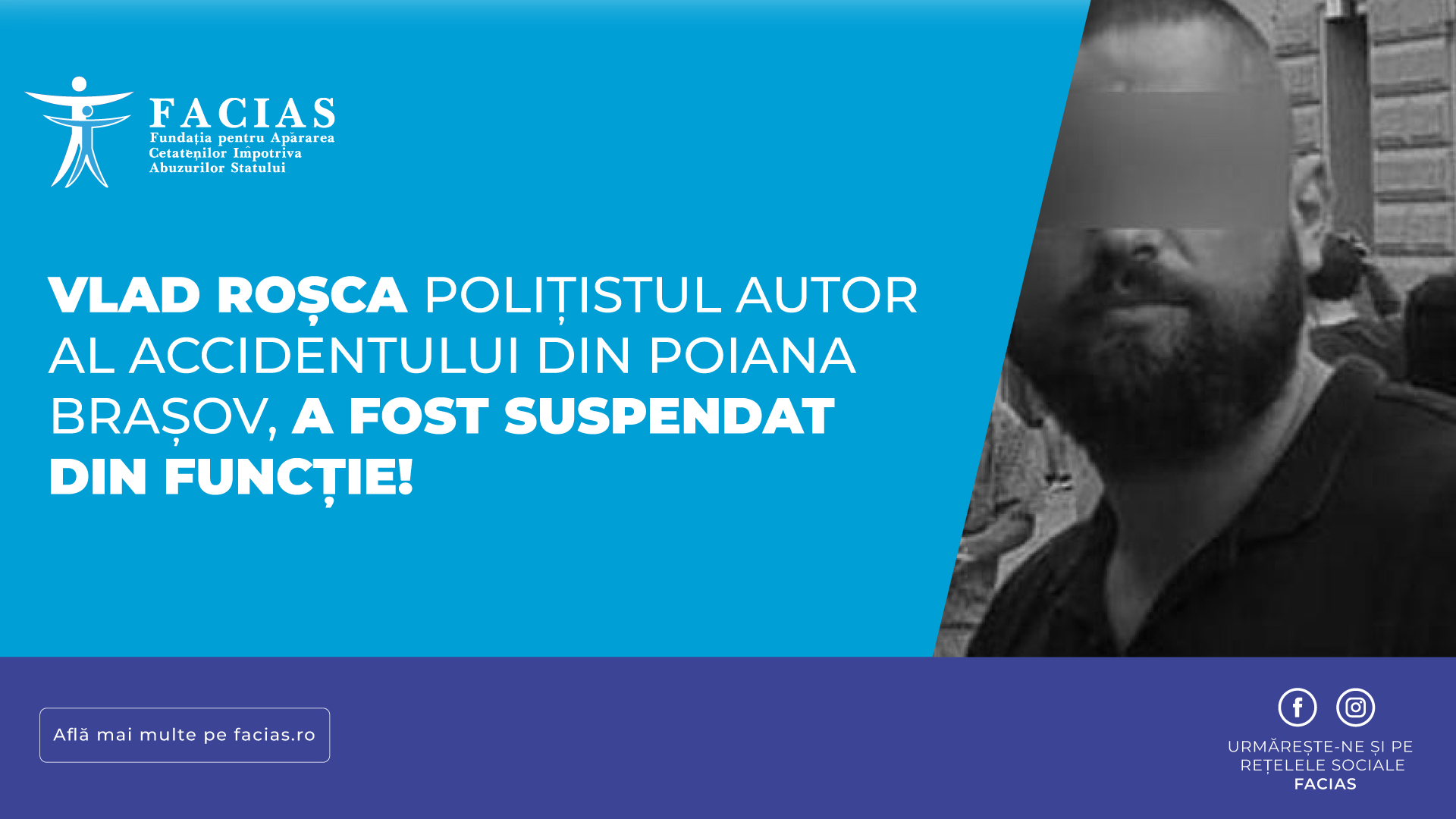 Fundația pentru Apărarea Cetățenilor Împotriva Abuzurilor Statului (FACIAS) a solicitat Inspectoratului General al Poliției Române (IGPR) suspendarea din funcție a polițistului care l-a accidentat mortal pe Andrei Șerban Ionescu, studentul olimpic de la Universitatea Politehnica din București.