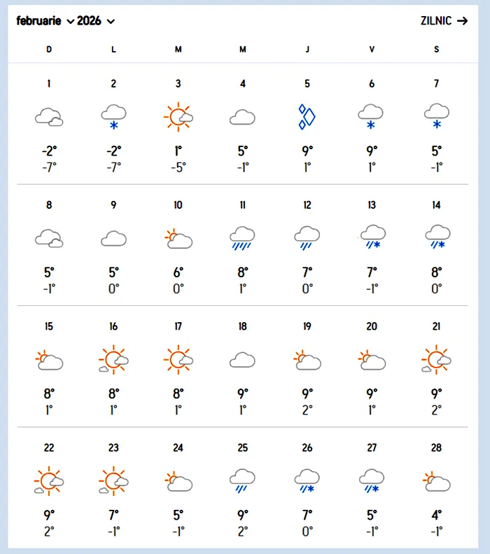 Și în februarie vor fi zile cu precipitații – ploaie, lapoviță și ninsoare. Va mai ninge la începutul lunii, iar meteorologii nu exclud episoade de viscol sau ninsoare mai abundentă.