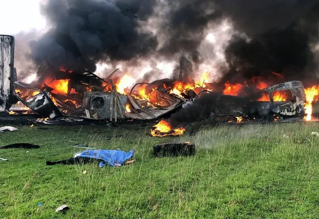 În urma impactului autoturismelor a izbucnit un incendiu puternic.