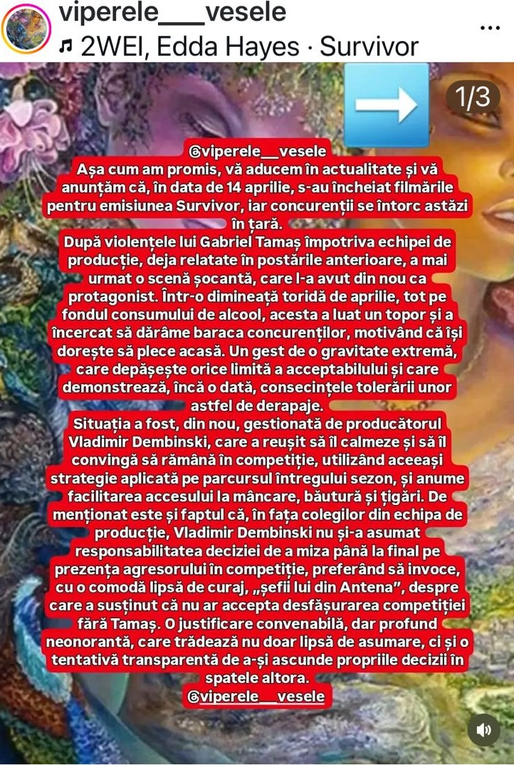În cadrul culiselor Survivor, tensiunile au depășit limitele unui reality show. Potrivit informațiilor publicate de pagina Viperele Vesele, în culise s-ar fi creat situații tensionate, marcate de violențe, decizii controversate și strategii care au alimentat conflictele dintre concurenți.