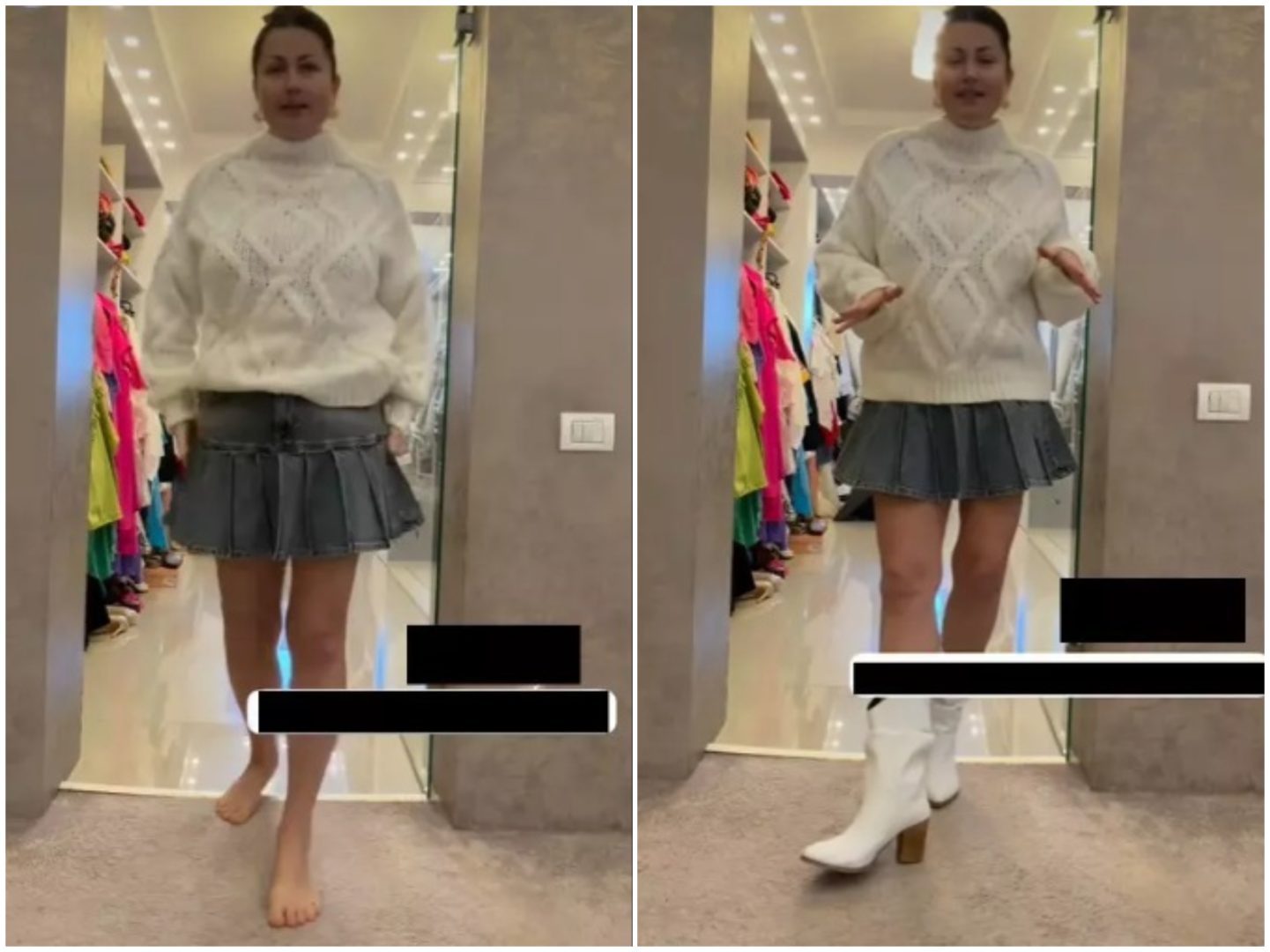 Gabriela Cristea a apărut purtând o fustă mini din denim și un pulover alb, gros, ținută numai bună de ieșit la mall. „Hai să facem și o ținută pentru mers la mall. Mi-am ales această fustă din denim care mie mi-a plăcut foarte mult. O să o port și mai mult la vară. (…)