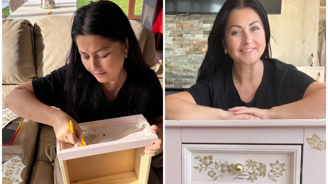 Prezentatoarea a recondiționat noptiera din lemn a fiicei sale, Victoria, pe care a vopsit-o în alb și a decorat-o cu motive aurii. „Dragilor, de când mă știu, mi-a plăcut să-mi personalizez lucrurile, iar de când avem casa noastră, am tot avut ce să personalizez. Mi-am vopsit aproape toate lustrele, pereții au fost decorați atipic, și lista poate continua.