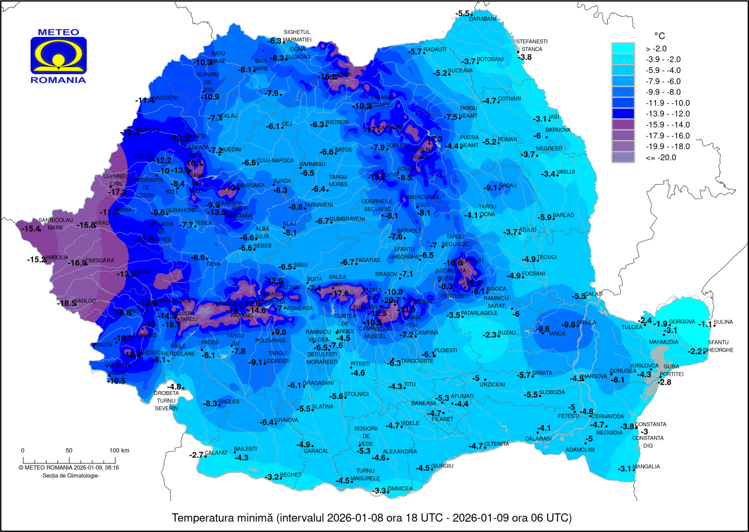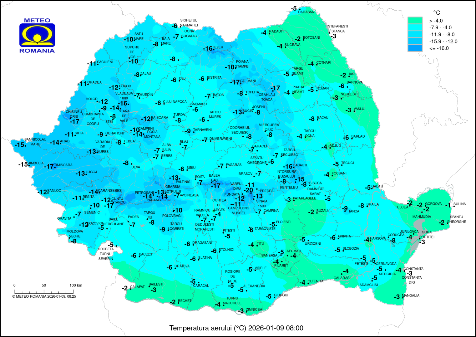 Cel mai frig era dimineață la Timișoara, minus 17 grade.