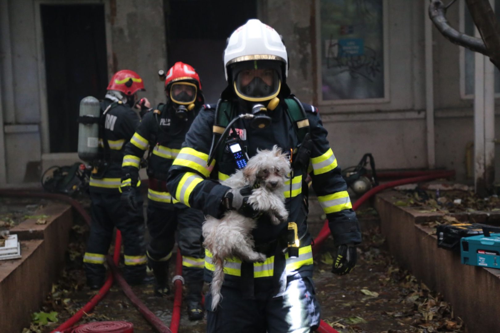 In cladire au fost gasiti doi catei, care au fost scosi de pompieri.