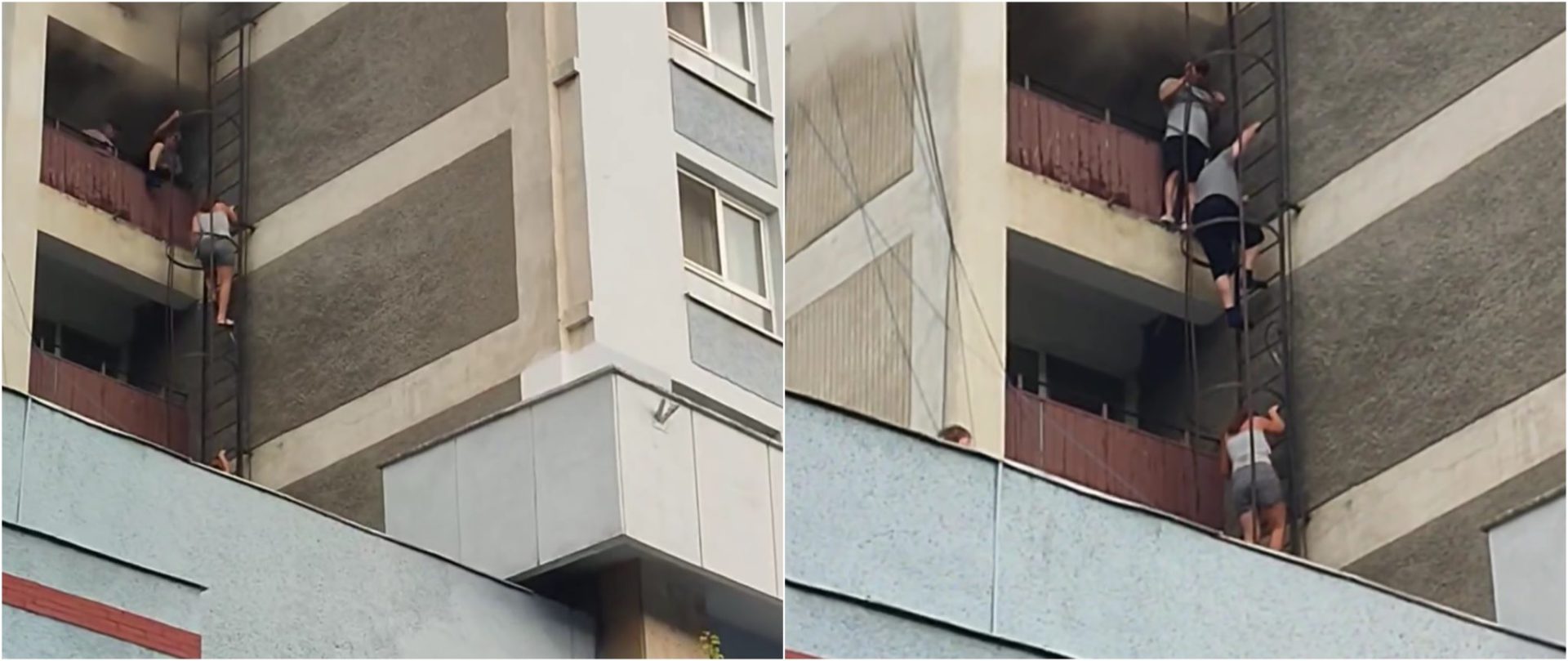 Potrivit unor filmări apărute în mediul online, oamenii, disperați au început să iasă din camere pe geamuri, pe scara exterioară amplasată pe peretele clădirii.