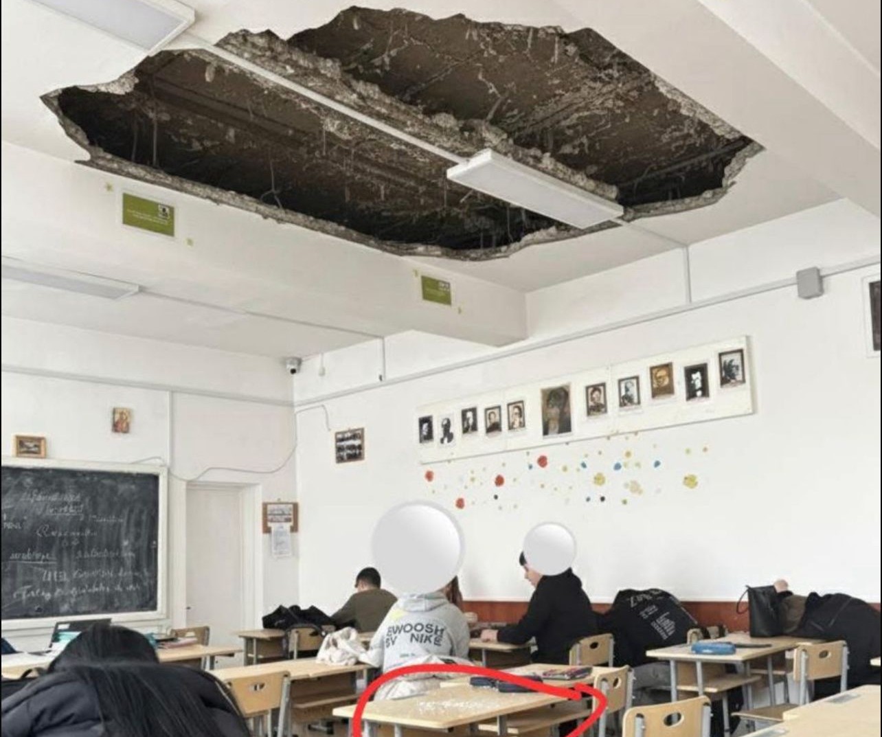 Tavan prăbuşit peste elevi, în timpul orei, la un liceu abia renovat. Incidentul a avut loc în corpul B al Colegiului Naţional “Mihai Eminescu” din Botoşani. Bucăţile de plafon au căzut peste catedră şi prima bancă aflată în faţa acesteia. Din fericire nimeni nu a fost rănit grav în urma incidentului.