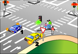 » În ce ordine vor trece conducătorii celor trei vehicule prin intersecţia din imagine?