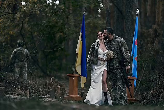 Cuplul s-a căsătorit vineri într-o pădure din Harkov, într-o zi de sărbătoare cunoscută drept Ziua Apărătorilor, dată aleasă special pentru a-i onora pe veteranii militari ucraineni.