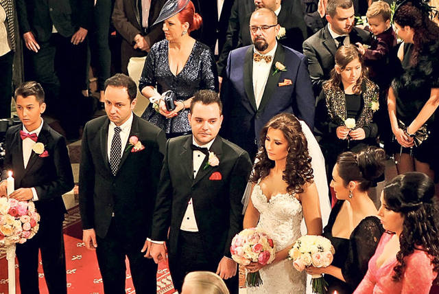 Nunta fastuoasă a avut loc la Palatul Ştirbei în prezenţa a peste 1000 de invitaţi, printre aceştia aflându-se şi fostul preşedinte al României, Ion Iliescu, precum şi Ştefan Stan, fostul câştigător al emisiunii „Vocea României”.