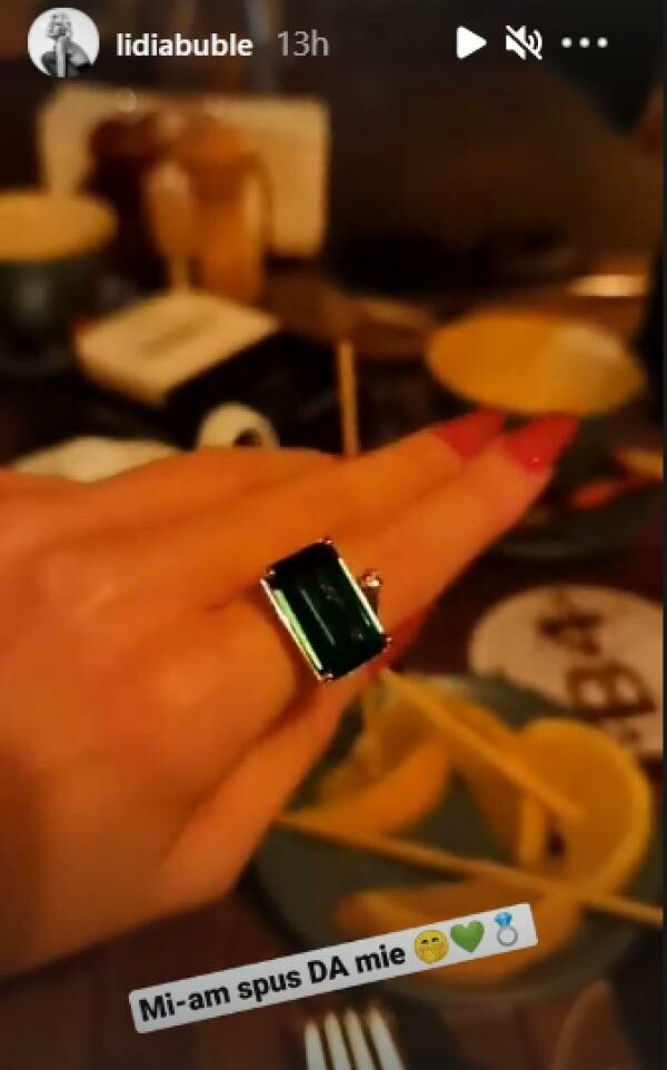 În dreptul fotografiei, Lidia Buble a dezvăluit că a fost „cerută în căsătorie”. Deși fanii se așteptau să fie vorba de un bărbat, ei bine Lidia Buble le-a spus că s-a cerut singură. ”Mi-am spus DA mie”, a scris Lidia Buble în dreptul fotografiei cu inelul.