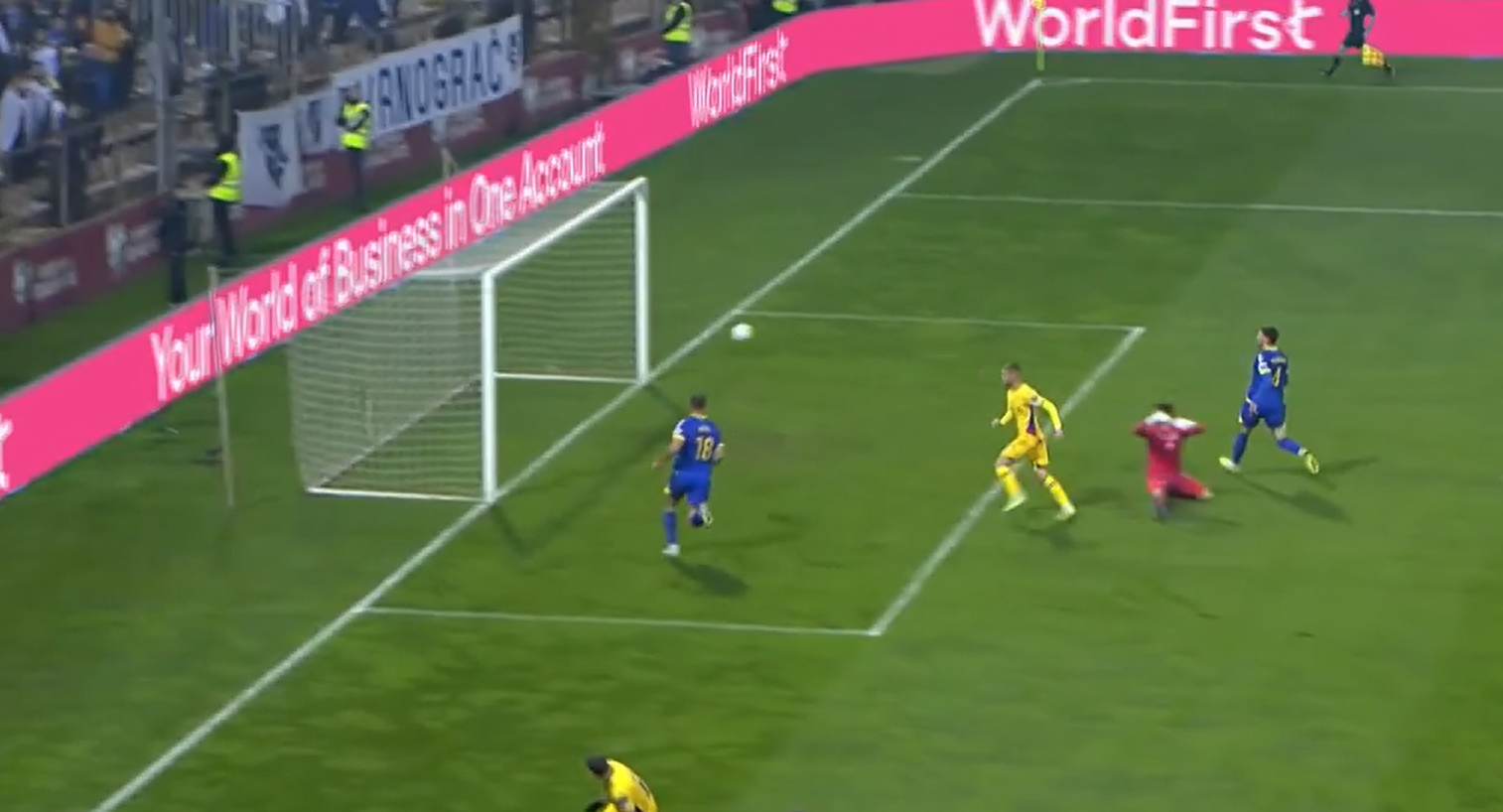 90+2′ – Tabakovic a marcat dintre cei doi fundaşi centrali ai tricolorilor. Bosnia – ROmânia 3-1