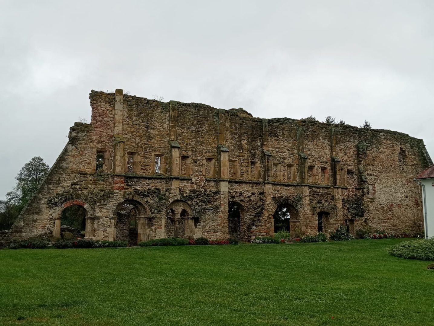 Tot aici, în vecinătatea casei parohiale, se găsesc ruinele sălii capitulare, a bibliotecii și a dormitorului comun. Arhitectura ruinelor se remarca printr-o îmbinare unică de stil romanic cu gotic la ferestrele îngemănate: două ferestre gotice, cu arc frânt, încadrate în arcada romanică.