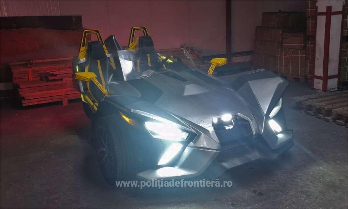 Cu această ocazie, a fost descoperit în interiorul acestuia, un triciclu cu motor, iar în urma verificărilor efectuate a rezultat faptul că acesta este semnalat de către autoritățile din Canada ca bun căutat în vederea confiscării”, se arată într-un comunicat al Poliției de Frontieră.