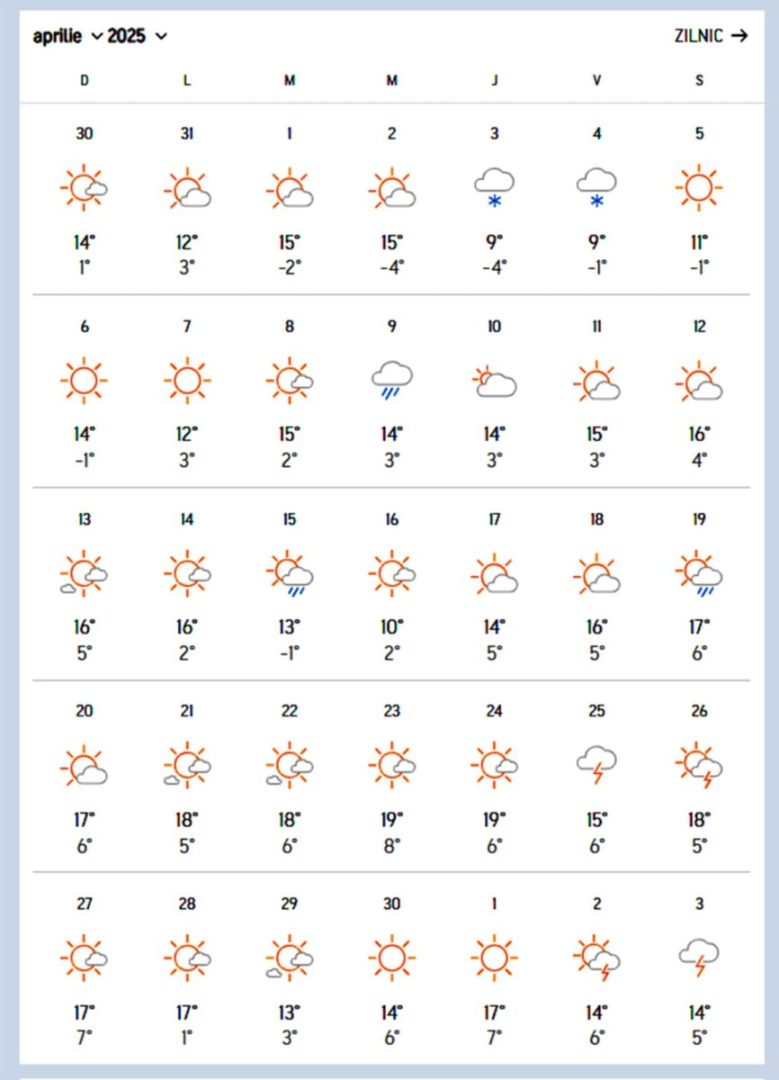 După acest episod rece, vremea pare să se mai îmbuneze, dar rămâne destul de imprevizibilă. Spre mijlocul și sfârșitul lunii aprilie, temperaturile vor crește treptat, ajungând până la 16-18 grade în unele zile, dar vor exista în continuare zile ploioase sau cu vreme schimbătoare.