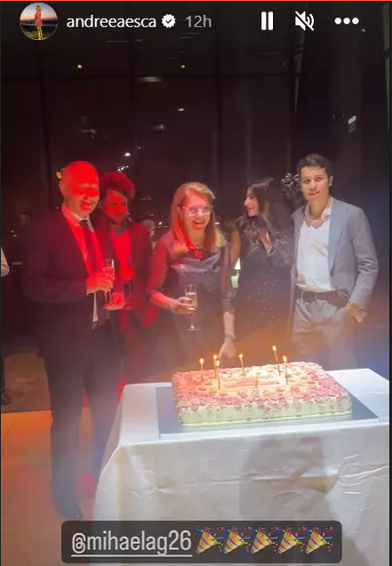 Andree Esca a postat mai multe imagini de la petrecere pe contul ei de Instagram, porintre care şi momentul tortului, când Mihaela Geoană i-a avut alături pe soțul ei, Mircea Geoană, pe fiica ei Ana, dar și pe ginerele Garret. Un alt moment special a fost când Mircea Geoană a scos-o la dans pe fiica lui.