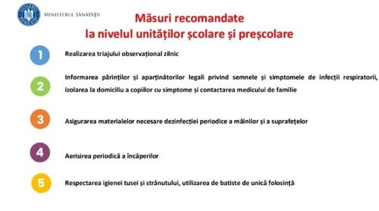 Instituţia a transmis măsuri pentru prevenirea infecţiilor respiratorii.