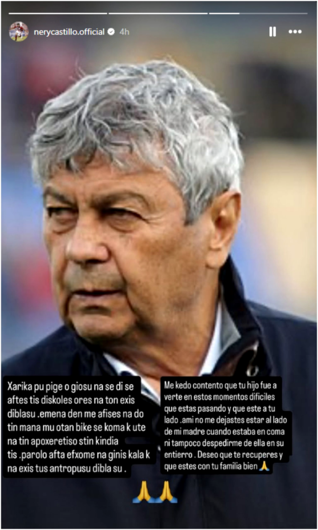 Însă, printre altele, Nery Castillo, fost jucător al lui Mircea Lucescu în perioada în care antrenorul român se afla în Ucraina, la cârma lui Șathior Donețk, a venit cu o postare la care puțini se așteptau. Acesta a transmis un mesaj dur, reproșându-i lui Lucescu că nu a putut fi lângă mama sa înainte să moară, dar nici la înmormântare, pentru că nu l-a lăsat să părăsească echipa.