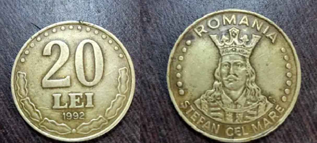 Moneda emisă în 1992 care valorează o avere.  Este vorba despre moneda de 20 de lei. Aceasta se vinde pe internet cu 50.000 de euro.