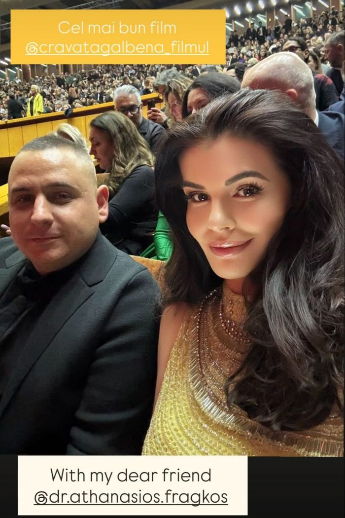 După ce, în urmă cu o săptămână, aceasta a fost surprinsă la un restaurant de lux din centrul Capitalei, acum a participat la lansarea unui film, acolo unde s-a întâlnit cu un prieten, medicul Athanasios Fragkos, alături de care nu a ezitat să se posteze pe internet.