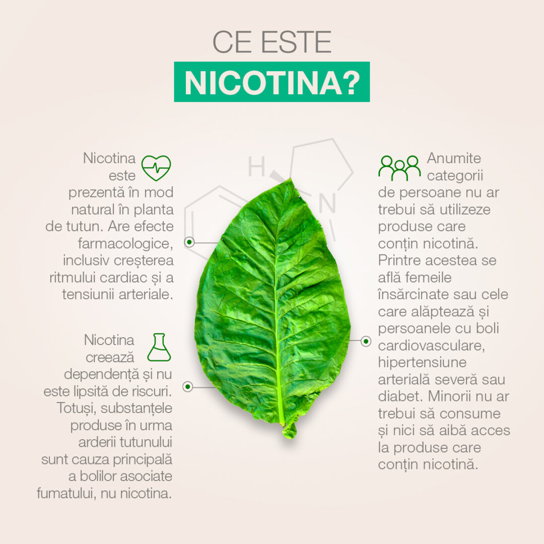 Pe scurt, nu nicotina e de vină, cât procesul prin care este extrasă din tutun în timpul fumatului, și anume prin ardere. Spre exemplu, produsele care încălzesc tutunul în loc să-l ardă generează niveluri semnificativ mai reduse ale substanțelor nocive în comparație cu fumul de țigară. Ele pot reprezenta o soluție de reducere a riscurilor pentru fumătorii care nu renunță la fumat. Totuși, cea mai bună soluție pentru aceștia rămâne renunțarea completă la fumat.
