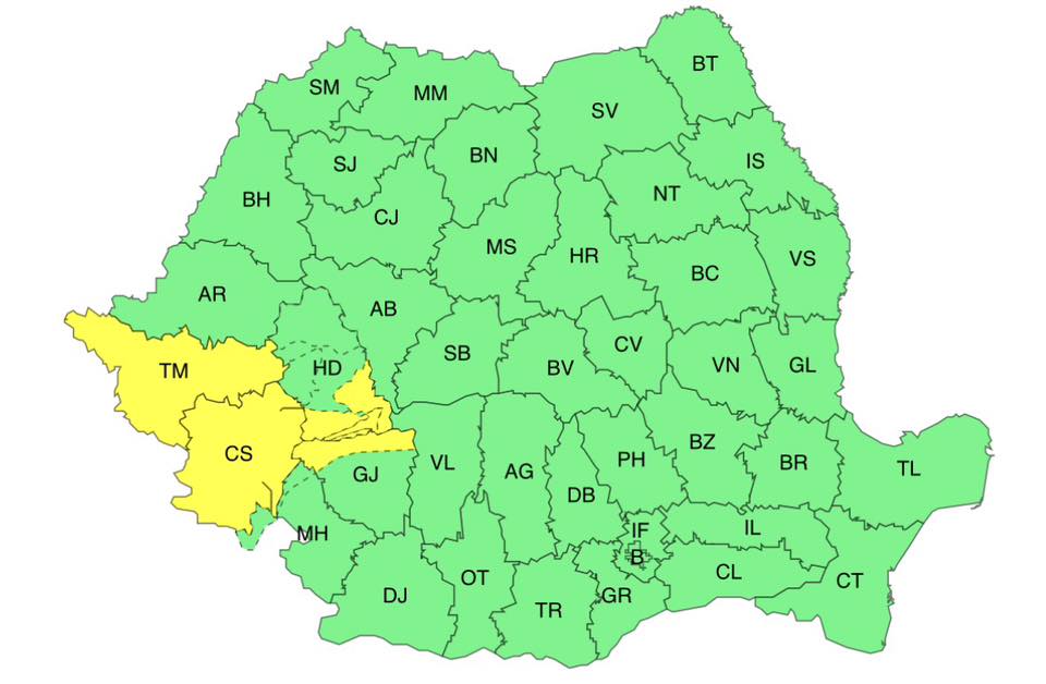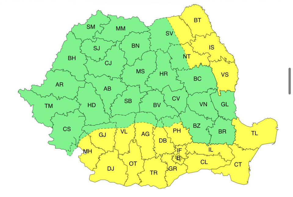 ATENȚIONARE METEO COD GALBEN