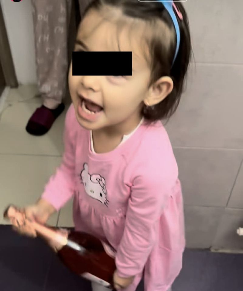 Alex Marcu a publicat un story în care micuța apare îmbrăcată într-o rochiță roz, cu o bentiță albastră pe cap. În mână ține o sticle de șampanie roz și îi cântă tatălui ei „Mulți ani trăiască” în limba engleză.