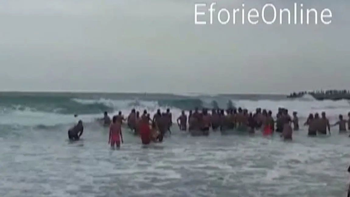 Zeci de oameni au format un lanţ uman şi au intrat în apă pentru a le salva pe cele două fete, iar împreună cu salvamarii au reuşit să le aducă la ţărm.