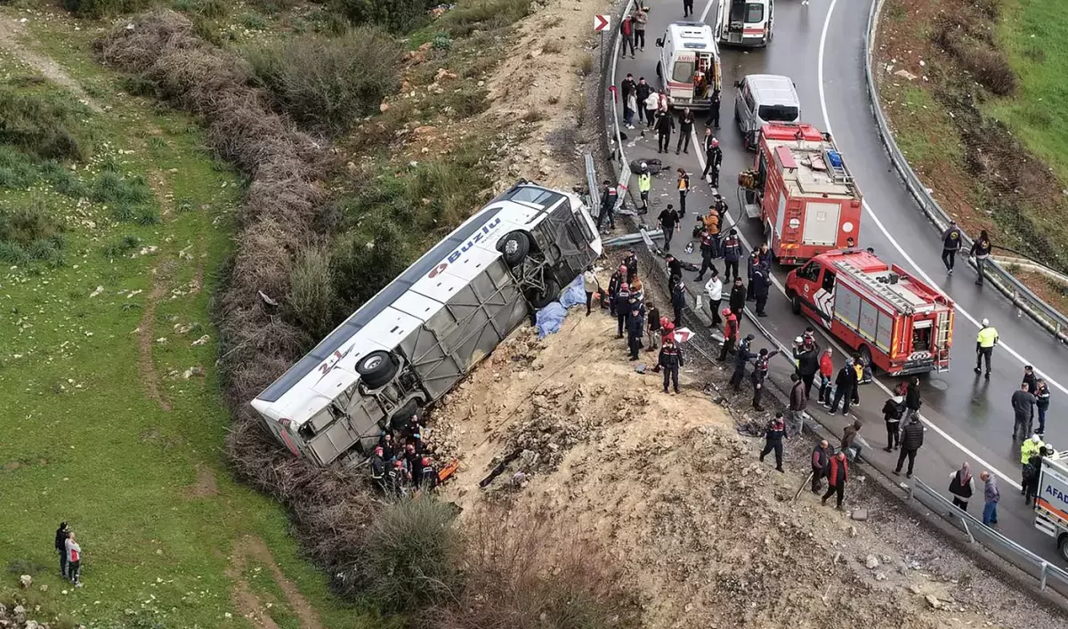 Imaginile difuzate de postul public de televiziune TRT au arătat autobuzul răsturnat la marginea drumului, pe o rampă de acces la autostradă în Dosemealti, la nord-vest de centrul orașului Antalya.