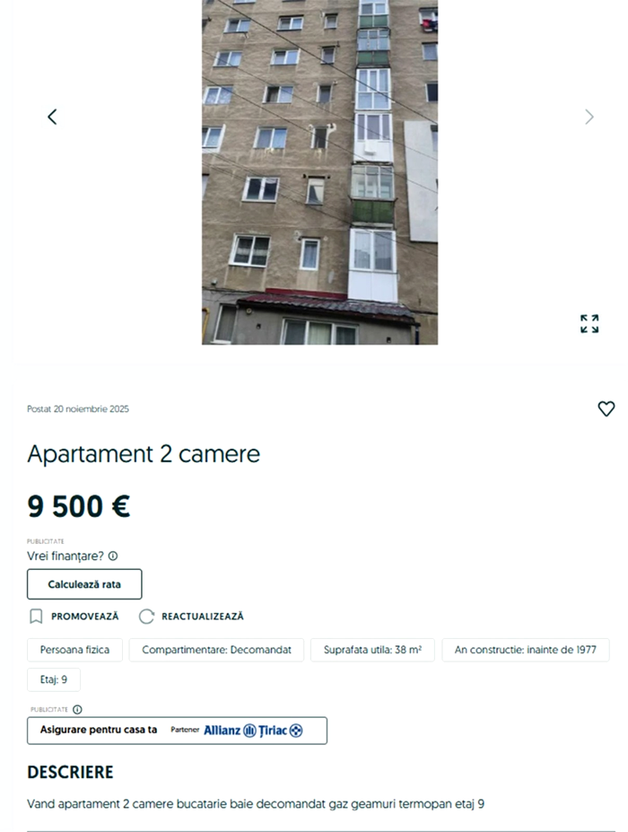 Chiar dacă astfel de oferte sunt mai degrabă excepții, ele demonstrează că pe piața imobiliară din România încă există zone unde accesul la o locuință este posibil cu un buget modest. Pe platformele imobiliare, apartamentele cu două camere din localități apropiate de București sau din ansambluri rezidențiale noi ajung frecvent la zeci sau chiar peste o sută de mii de euro, ceea ce accentuează și mai mult diferența față de oferta din Vulcan, arată csid.ro.