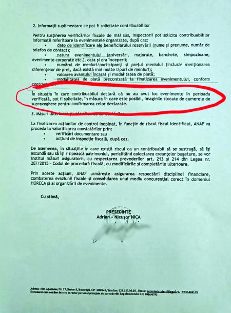Sindicaliștii spun ca inspectorilor ANAF li se cere să încalce legile pentru a colecta sume considerabile de bani din aplicarea amenzilor. În acest moment este vizat sectorul HoReCa. Totodată, sindicaliştii au transmis că înțeleg nevoia încasării veniturilor bugetare, însă nerespectarea normelor legale și încălcarea drepturilor conferite de lege contribuabililor nu reprezintă o cale corectă de a acţiona. „Solidaritatea” îi solicită premierului o intervenţie de urgentă cadrul ANAF pentru reinstaurarea unui climat de muncă normal, bazat pe respect, predictibilitate și legalitate.