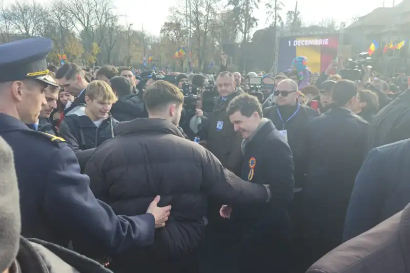 Preşedintele AUR George Simion s-a întâlnit luni cu cu simpatizanţi, alături de care a plecat în marş spre cetatea Alba Iulia. ”Acolo ne vom întâni toţi patriţii”, a spus el întrebat dacă se va întâlni cu Călin Georgescu. El a spus că nu va participa la ceremoniile oficiale. Simion s-a fotografiat cu unii dintre cei prezenţi şi a dat mâna cu simpatizanţii, al căror număr l-a estimat la 10 – 11.000.