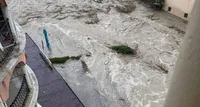 Străzile sunt inundate, mașinile au fost luate de ape și, de asemenea, sunt zeci de locuințe inundate.