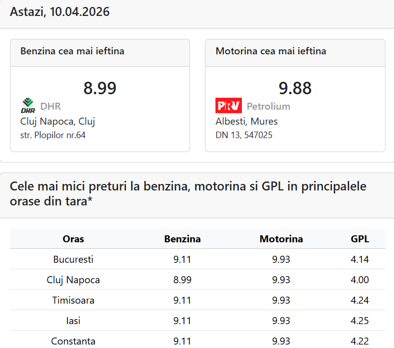 Preţ carburanţi 10 aprilie 2026: Cât costă motorina la Bucureşti
