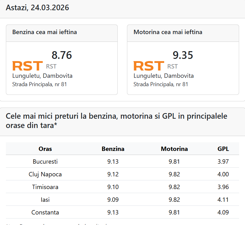 Preţ carburanţi 24 martie 2026. Anunţul Guvernului privind măsurile prin care să combată creşterea tarifelor la pompă nu a făcut decât să accelereze majorările, preţurile crescând exponenţial chiar de luni seară parcă pentru a avea de unde să scadă pentru a nu se schimba, practic, mai nimic, pe piaţa coumbustibililor în ceea ce-l priveşte pe consumatorul obişnuit.