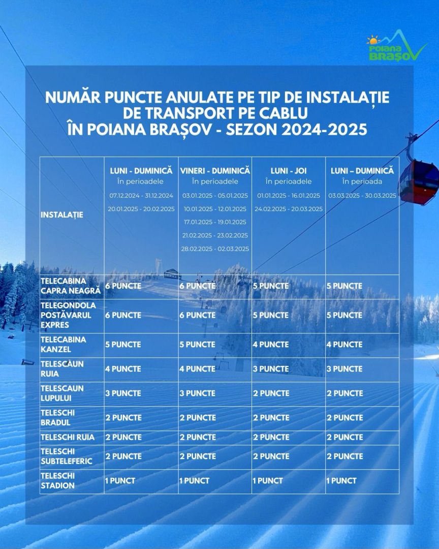 Copiii între 6 și 12 ani beneficiază de reducere pentru ski sau snowboarding. Noile prețuri au fost aprobate de Consiliul Local Brașov după o negociere cu operatorul care gestionează mai multe instalații de transport pe cablu din Poiana Brașov și masivul Postăvarul.