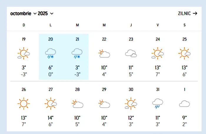 Citește și: Prognoza meteo 20 octombrie. Vreme frumoasă la început de săptămână, dar cu temperaturi scăzute. Îmbrăcați-vă bine înainte să ieșiți din casă!