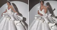 Raluca Pastramă s-a postat într-o rochie de mireasă spectaculoasă, amplă, cu detalii sculpturale și un voal elegant, care a stârnit imediat reacții intense în mediul online. Silueta este pusă în evidență de un corset sofisticat, iar volanele și perlele aplicate manual sugerează o creație destinată unui moment inedit.