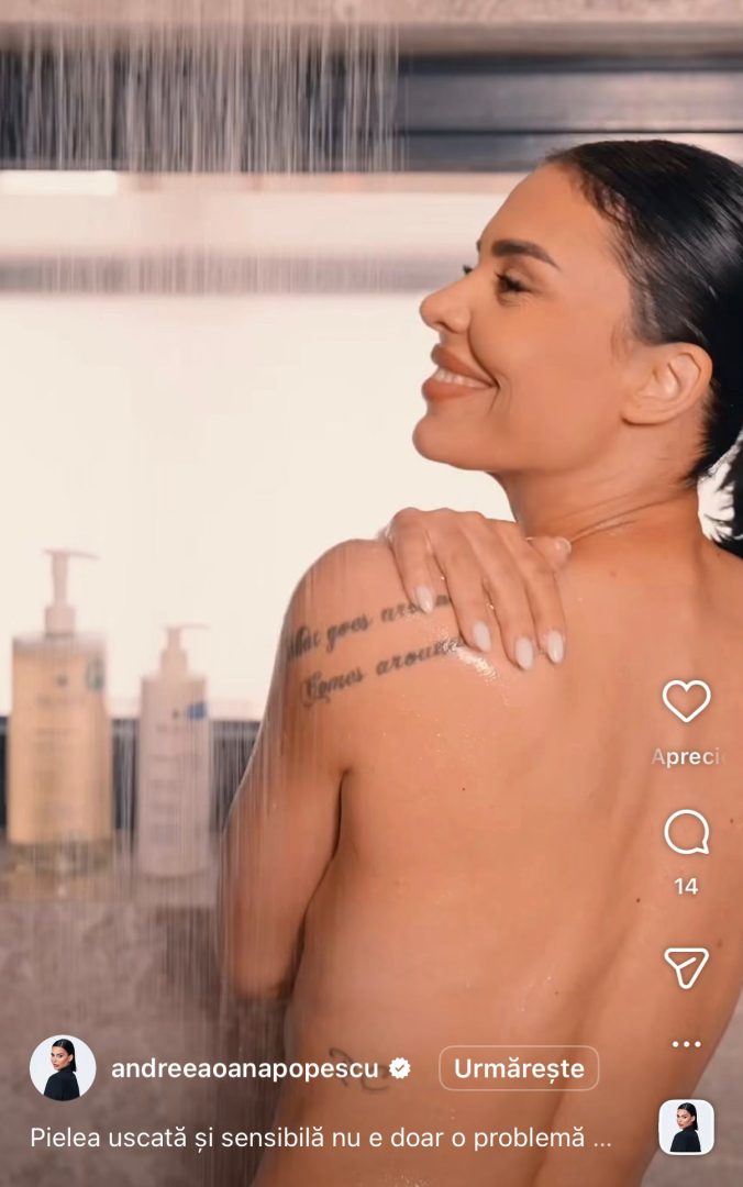 Ulterior, ca să-l provoace și mai tare pe antrenor, influencerița a publicat o fotografie de la duș, în care stă cu spatele la cameră astfel încât să i se vadă tatuajul cu inițialele fostului soț: RC.