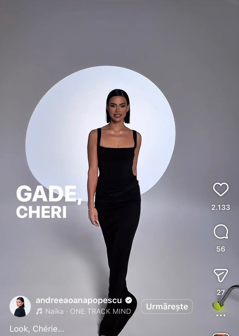 Într-unul dintre clipuri, influencerița apare într-o ținută elegantă și sexy, care îi scoate în evidență silueta de invidiat. Pe fundal se aud versurile unei melodii care l-ar avea ca țintă chiar pe antrenorul de fotbal.