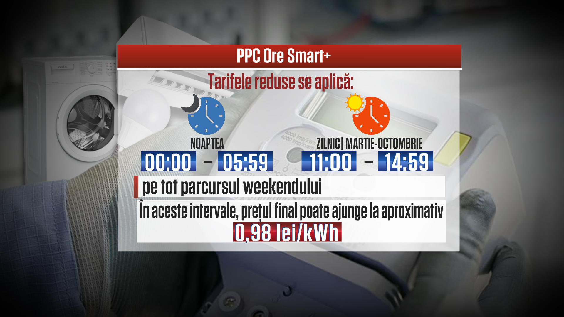Potrivit simulărilor PPC Energie, un client casnic cu un consum mediu de 300 kWh pe lună poate economisi aproximativ 580 de lei pe an, doar prin mutarea a 75 kWh din consumul lunar (echivalentul utilizării mașinii de spălat sau a cuptorului) în orele cu tarif redus.