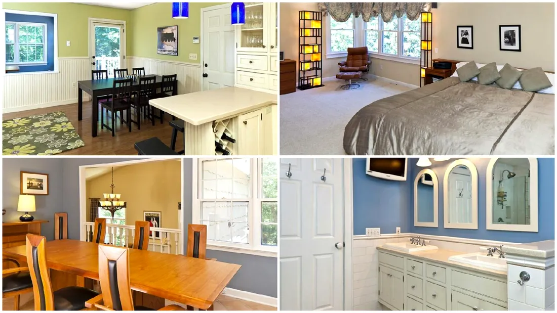 Apartamentul matrimonial din vilă se află la nivelul principal, are vedere la lac și zonă de relaxare, dressing și o baie proprie somptuoasă. Bucătăria renovată, camera de mic dejun și toaleta împart etajul principal cu sufrageria formală, spălătoria mare și terasa.