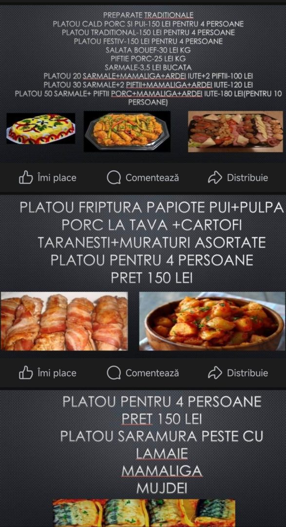 S-au dus vremurile când gospodinele stăteau cu orele în bucătărie pentru a prepara masa festivă de Crăciun. Acum, multe produse se află la un click distanță sau la un telefon. Restaurantele au oferte atractive, iar comenzile nu întârzie să apară. Astfel, cei care petrec Crăciunul acasă, dar nu au în plan să piardă timpul în bucătărie, există varianta mai simplă și mai rapidă de a comanda. Pentru suma de 500 de lei, unele doamne aleg să se relaxeze. De la platouri tradiționale, la sarmale cu turtă și piftie, cozonaci și alte dulciuri, se pot comanda de toate.