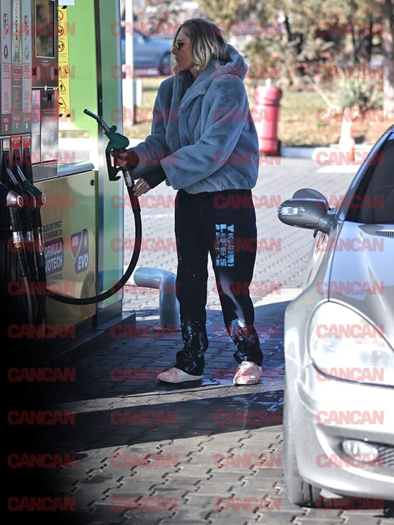 Creatoarea de modă nu a zăbovit prea mult la stația de carburant, ci a plecat mai departe pentru a-și continua treburile pe care le mai avea de făcut în ziua respectivă.