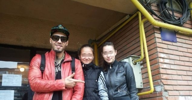 Două tinere care aşteptau autobuzul în staţia din faţa blocului cântăreţului au avut ocazia să-i vadă şi să se pozeze cu cei doi artiști de top.