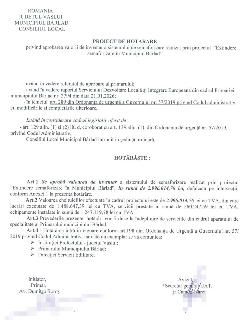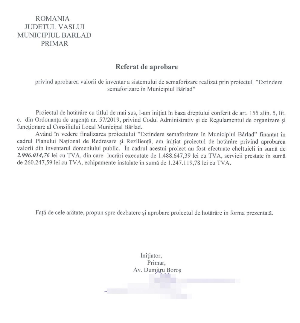 Semafor de 50.000 de euro la Bârlad. Cum justifică primăria cheltuiala imensă: „Semafoarele salvează vieți!” DOCUMENT