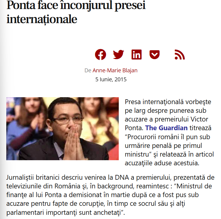 Aventurile neomarxistei LGBT nu se opresc aici. În iunie 2015, când colabora cu publicația „Curs de Guvernare”, Blăjan a acționat ca o trompetă loială a binomului SRI-DNA, răspândind reacțiile presei internaționale la punerea sub acuzare a premierului Victor Ponta.