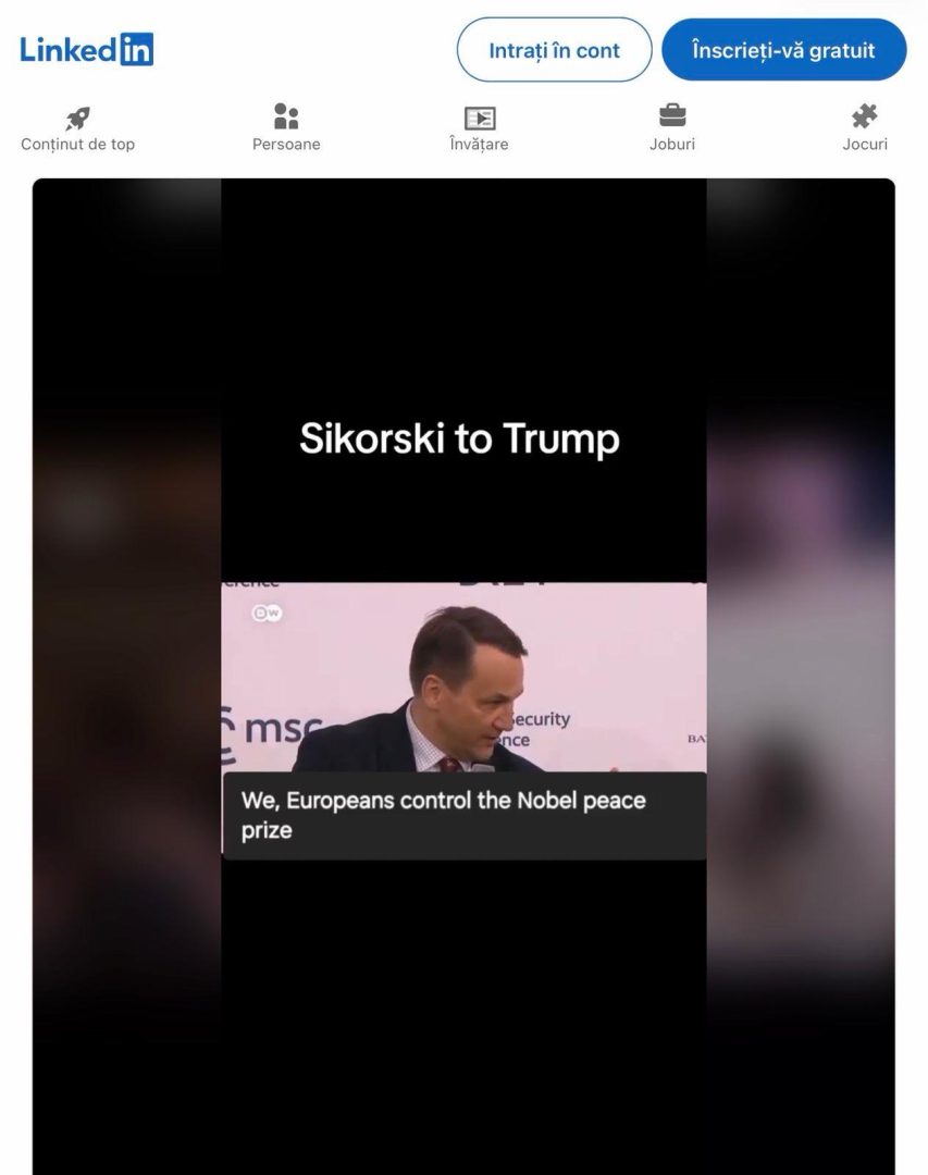 Într-unul din ele, Radoslaw Sikorski, vicepremier al Poloniei, spunea că decizia lui Donald Trump de a purta discuții directe cu Vladimir Putin reprezintă „o greșeală”. Acesta a râs de Donald Trump și a spus că, dacă vrea să câștige Premiul Nobel, trebuie să asigure o „pace dreaptă”. Mai mult, i-a dat lecții de politică externă președintelui american, sugerându-i că credibilitatea SUA depinde de sfârșitul războiului ruso-ucrainean.
