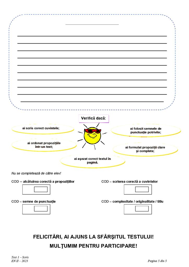 Elevii de clasa a II-a au susținut marți proba scrisă la Limba română din cadrul examenului Evaluare Națională. La primul exercițiu au avut de scris un bilet părinților, prin care să-i anunțe că pleacă la bibliotecă, la o activitate organizată de învățătoare, potrivit subiectelor obținute de Edupedu.ro.