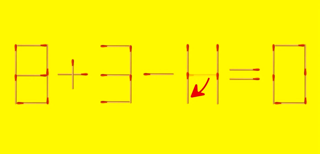 Mută un singur băț de chibrit pentru a corecta 8+3-4=0. Ai la dispoziție doar 10 secunde.